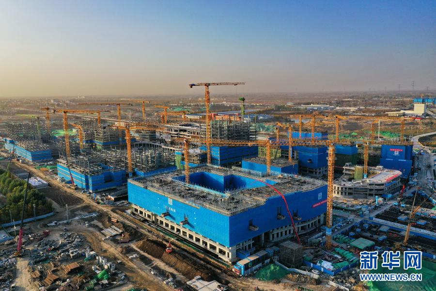 這是11月6日拍攝的河北雄安新區(qū)商務(wù)服務(wù)中心建設(shè)現(xiàn)場(chǎng)(無(wú)人機(jī)照片)。新華社記者 牟宇 攝