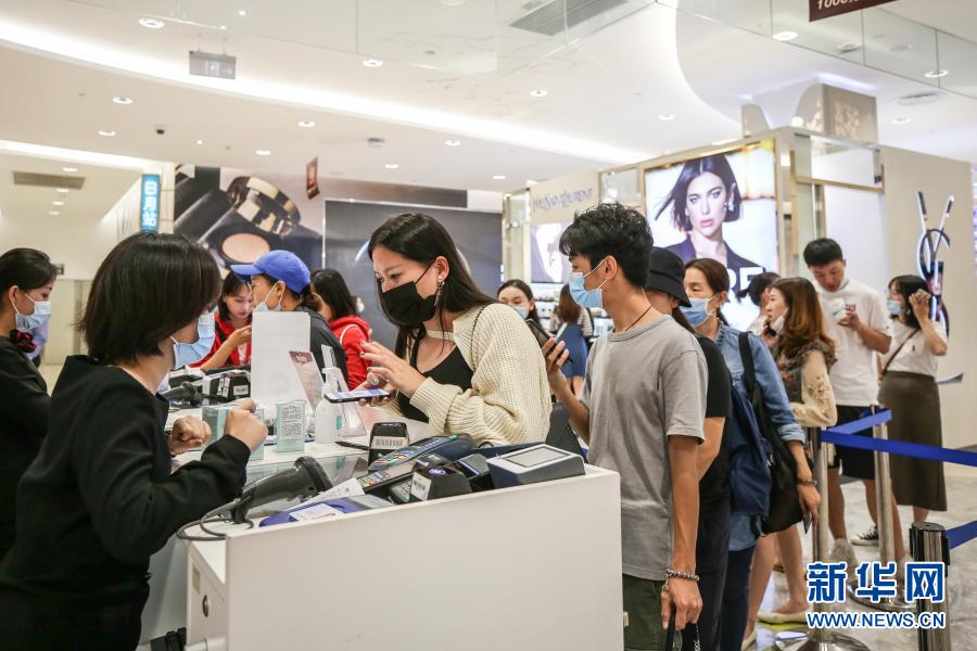 10月27日,消費(fèi)者在海南省海口市日月廣場(chǎng)免稅店選購(gòu)商品。新華社記者 張麗蕓攝