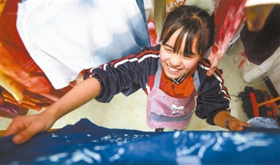 “十三五”期間,我國(guó)教育事業(yè)發(fā)展取得顯著成效,文化事業(yè)和文化產(chǎn)業(yè)繁榮發(fā)展,文化自信不斷增強(qiáng)。圖為2020年12月17日,貴州省黔西縣鐘山小學(xué),學(xué)生在體驗(yàn)蠟染非遺項(xiàng)目。 周訓(xùn)超攝(影像中國(guó))