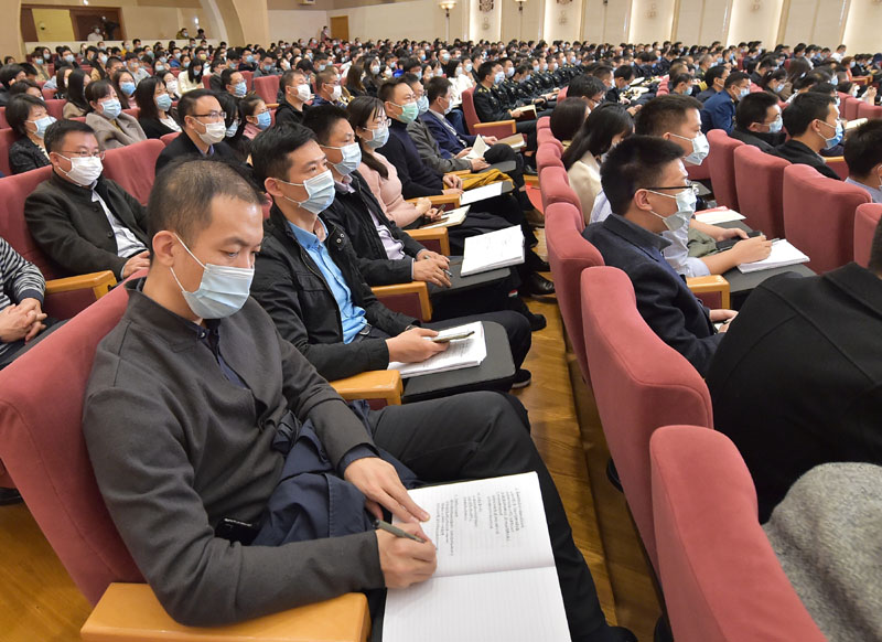 2020年11月7日,學(xué)習(xí)貫徹黨的十九屆五中全會(huì)精神中央宣講團(tuán)首場(chǎng)報(bào)告會(huì)在北京舉行。新華社記者 李賀 攝
