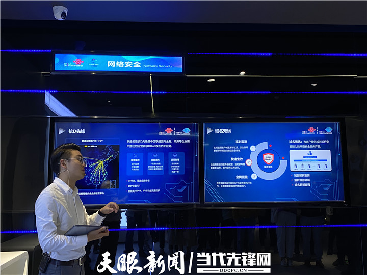 講解員為大家介紹了“抗D先鋒”“域名無憂”兩個亮點(diǎn) 在網(wǎng)絡(luò)安全版塊,講解員為大家介紹了“抗D先鋒”“域名無憂”兩個亮點(diǎn)項目。聯(lián)通云盾抗D先鋒是中國聯(lián)通面向金融,政務(wù)等企業(yè)用戶推出的運(yùn)營商級DDoS攻擊防護(hù)服務(wù),目前已覆蓋全國各省。據(jù)了解,在網(wǎng)絡(luò)安全方面,聯(lián)通省公司安全運(yùn)營平臺對客戶上網(wǎng)流 量進(jìn)行統(tǒng)的管控、 審計、分析,并能針對上網(wǎng)流量進(jìn)行安全查殺與防護(hù),在安全的情況下實現(xiàn)為客戶代理上網(wǎng),從而保障了客戶上網(wǎng)的安全與行為管控。