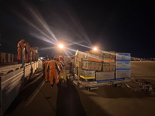 人民網(wǎng)北京2月8日電 (徐祥麗、于洋、蘇纓翔)當(dāng)?shù)貢r(shí)間2月6日,土耳其南部發(fā)生7.8級強(qiáng)震,造成重大人員傷亡和財(cái)產(chǎn)損失。中國政府第一時(shí)間啟動(dòng)緊急人道主義援助機(jī)制,向土耳其和敘利亞提供緊急援助。據(jù)不完全統(tǒng)計(jì),目前中國救援隊(duì)、公羊救援隊(duì)、藍(lán)天救援隊(duì)等多支救援力量已經(jīng)抵達(dá)或正在前往土耳其地震災(zāi)區(qū)。 當(dāng)?shù)貢r(shí)間2月8日凌晨4點(diǎn)30分(北京時(shí)間9時(shí)30分),中國救援隊(duì)一行82人經(jīng)過約10小時(shí)的飛行,抵達(dá)土耳其阿達(dá)納機(jī)場。隊(duì)長趙明介紹,根據(jù)當(dāng)?shù)貙?shí)際情況,中國救援隊(duì)立即開展卸貨轉(zhuǎn)運(yùn)工作,盡快做好與我駐土耳其使館、當(dāng)?shù)卣?、?lián)合國有關(guān)機(jī)構(gòu)對接,結(jié)合目前救援進(jìn)展情況,接領(lǐng)具體搜救行動(dòng)任務(wù),并擬派出救援小隊(duì)對執(zhí)行任務(wù)場地進(jìn)行實(shí)地勘查,同時(shí)選擇安全合適的位置搭建營地。