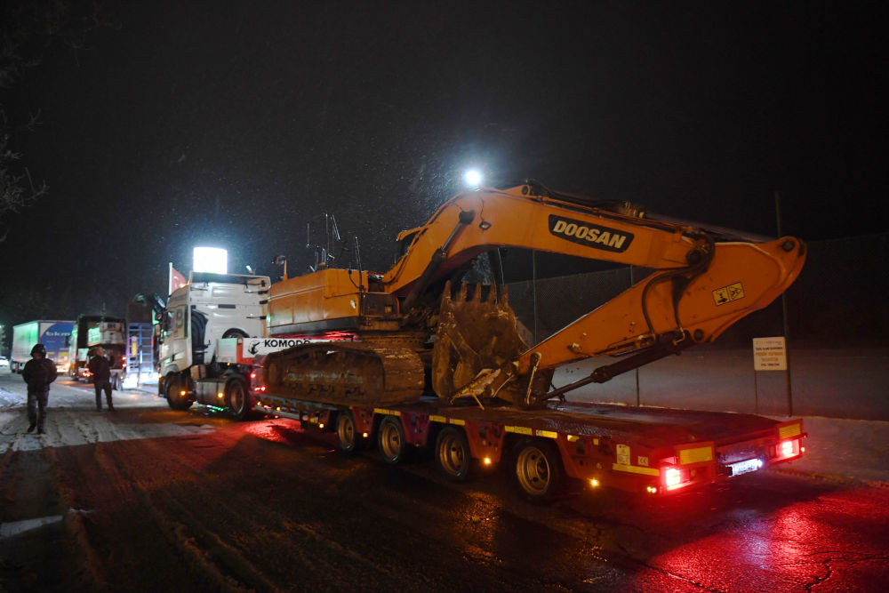 2月6日晚在土耳其伊斯坦布爾至安卡拉公路上拍攝的運往災(zāi)區(qū)的大型機械。