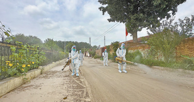 8月6日,河北省永清縣曹家務鄉(xiāng)張莊子村,工作人員在對洪水過后的街道進行消毒。 邵玉姿 龐趁友攝影報道 汛情就是命令,生命重于泰山,防汛救災工作絕不能有絲毫放松。加強力量組織救援,妥善安置受災群眾,抓緊修復受損基礎設施,落實各項防汛救災措施……連日來,各地區(qū)和有關部門擰成一股繩,以“時時放心不下”的責任感、“越是艱險越向前”的精氣神,全面加強災害防范應對,全力以赴開展搶險救災工作,全力保障人民群眾生命財產安全和社會大局穩(wěn)定。廣大黨員干部和群眾團結一心、迎難而上,搶抓時間窗口,采取多種措施,盡快恢復正常生產生活秩序,堅決打贏防汛抗洪救災遭遇戰(zhàn)。 |