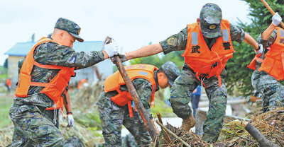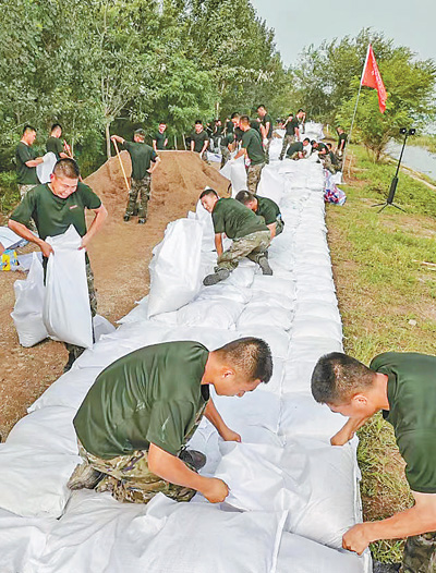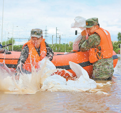8月5日,黑龍江省哈爾濱市道外區(qū)人武部民兵應急分隊在團結鎮(zhèn)勤勞村展開救援。 呂衍海攝(新華社發(fā))