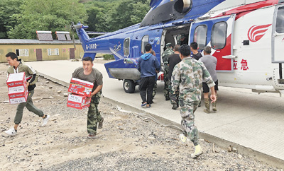 8月6日,黑龍江省應急管理廳調派直升機向受災地區(qū)運送救援物資。 劉溫馨 段紅偉攝影報道
