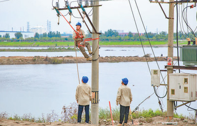 日前,國網北京石景山供電公司搶修人員在北京市房山區(qū)羊頭崗村搶修受損電力線路。 李 強攝