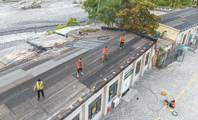 8月5日,中國移動北京公司搶修人員在北京市門頭溝區(qū)王平鎮(zhèn)鋪設光纜。 本報記者 張武軍攝