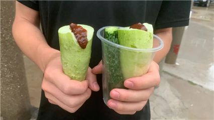 △落坡嶺村民為乘客準備的黃瓜蘸醬