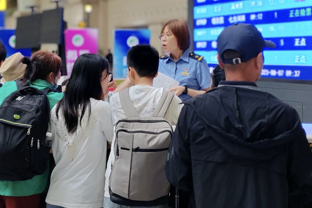 8月7日,乘客在車站咨詢列車開行等信息。(中國鐵路哈爾濱局集團(tuán)有限公司供圖)
