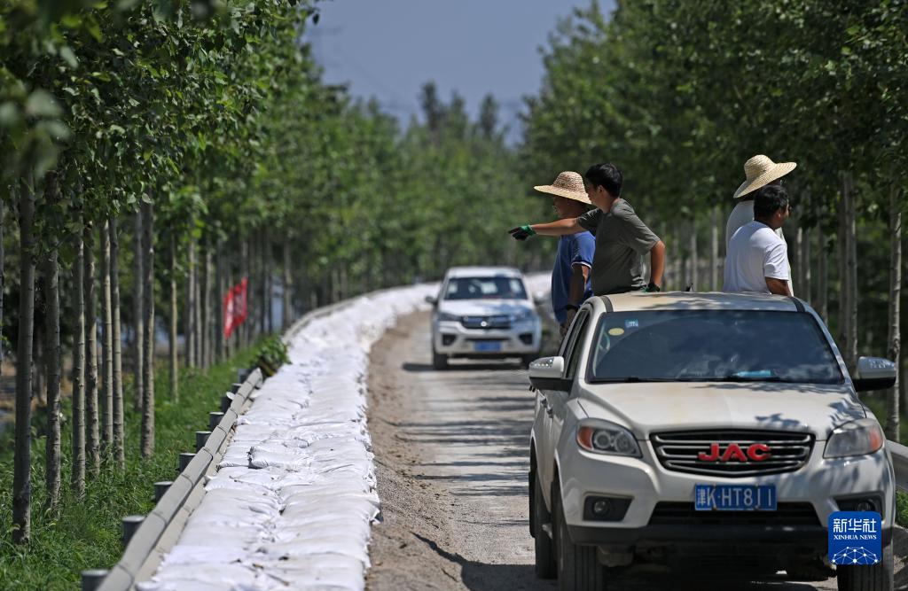 8月15日,應(yīng)急搶險(xiǎn)隊(duì)在天津市靜海區(qū)臺(tái)頭鎮(zhèn)清北地區(qū)北圍埝上巡護(hù)排查。