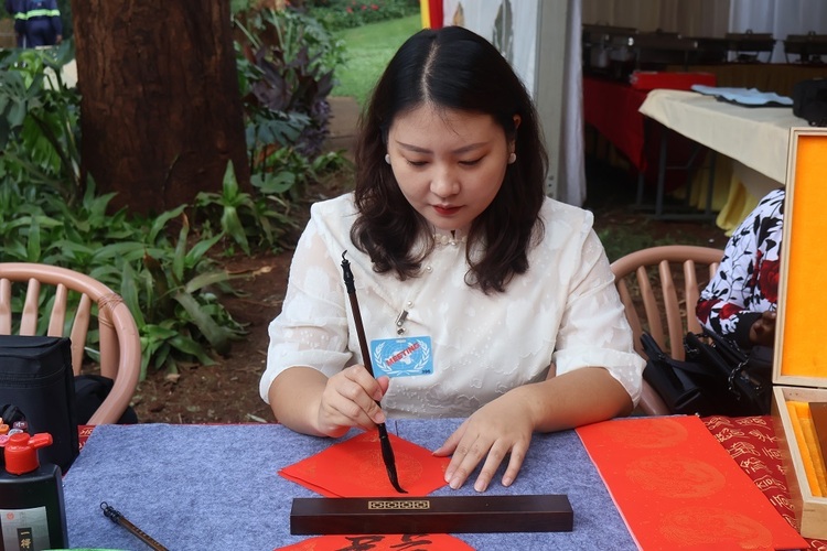 內(nèi)羅畢大學(xué)孔子學(xué)院國(guó)際中文教師志愿者樊國(guó)景介紹說(shuō),孔子學(xué)院時(shí)常為學(xué)生們舉辦新生開放日、內(nèi)羅畢國(guó)際文化節(jié)等各種文化活動(dòng),尤其是在春節(jié)期間,活動(dòng)內(nèi)容更是豐富多彩。 樊國(guó)景:無(wú)論是剪紙、寫福字、活字印刷,還是投壺套圈、寫書法,乃至親身體驗(yàn)包餃子,我都能從學(xué)生充滿好奇心和洋溢歡喜的笑臉上看到他們對(duì)博大精深的中華文化的喜愛(ài)與贊嘆之情。這些文化活動(dòng)在無(wú)形之中促進(jìn)了語(yǔ)言學(xué)習(xí),搭建起了一座加深跨文化理解、推動(dòng)文明互鑒的橋梁。