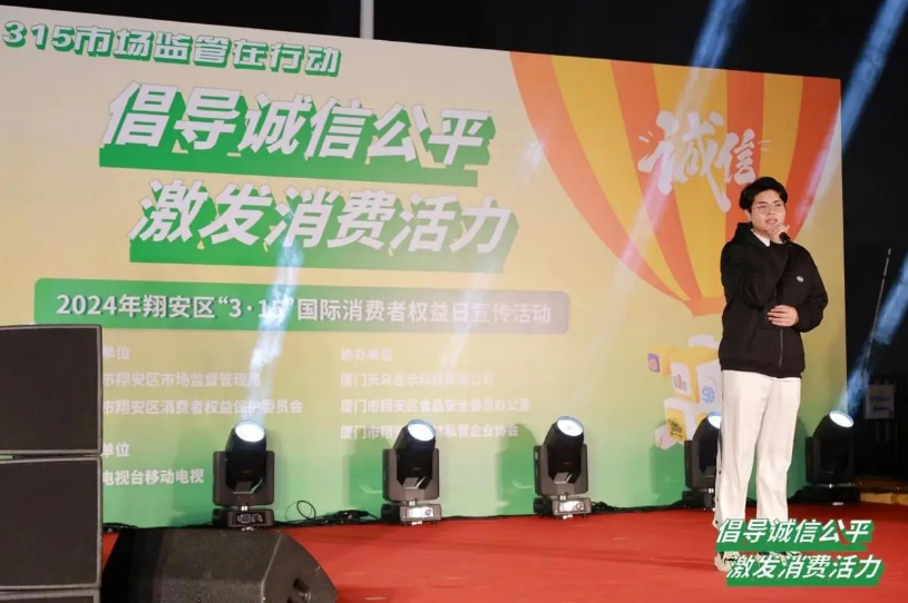 翔安區(qū)市場監(jiān)管局黨組書記、局長許子翼上臺致辭,宣布2024年翔安區(qū)“3·15”國際消費(fèi)者權(quán)益日宣傳活動正式啟動。