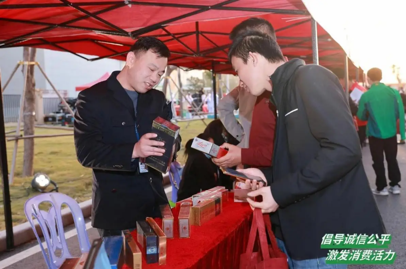 值得一提的是,今年是《消費(fèi)者權(quán)益保護(hù)法》施行30周年,翔安區(qū)市場監(jiān)督管理局還通過“消保進(jìn)社區(qū)”“消保進(jìn)動漫展”“消保進(jìn)校園”等方式,開展了形式新穎、內(nèi)容豐富的“3·15市場監(jiān)管在行動”系列宣傳。 3月8日,在大嶝田乾社區(qū),翔安區(qū)市場監(jiān)管局協(xié)同大嶝街道等各部門開展了一場別開生面的“3·15”宣傳市集,通過號召經(jīng)營者在誠信經(jīng)營承諾書展板上簽字、工作人員現(xiàn)場講解真假煙酒鑒別方法、免費(fèi)為涉旅餐飲店檢定電子秤等方式,保障公平交易、打造“誠信大嶝”新名片。