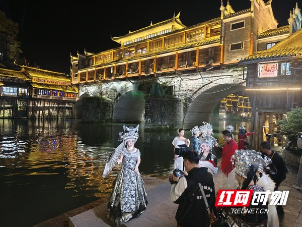 鳳凰古城以其人地相宜的街巷肌理、具有吊腳樓特色的明清建筑、多民族交融的民俗風(fēng)情,吸引著各地游客。豐富的歷史文化資源,催生出了依托古城為攝影基地的“旅拍”新業(yè)態(tài),游客在這里體驗(yàn)傳統(tǒng)服飾、風(fēng)俗習(xí)慣等,記錄下與鳳凰相關(guān)的美好瞬間。