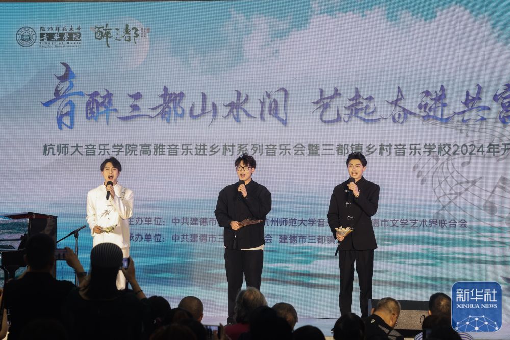 6月15日,一場別開生面的鄉(xiāng)村音樂會(huì)在浙江省建德市三都鎮(zhèn)鎮(zhèn)頭村文化禮堂舉行,來自杭州師范大學(xué)音樂學(xué)院的師生為村民即興演出并對(duì)村民樂隊(duì)的演奏進(jìn)行專業(yè)指導(dǎo)。這是建德市委宣傳部和杭州師范大學(xué)音樂學(xué)院“人文鄉(xiāng)村·藝術(shù)鄉(xiāng)建”合作的首場鄉(xiāng)村音樂會(huì),同時(shí)也是三都鎮(zhèn)2024鄉(xiāng)村音樂學(xué)校開班儀式。