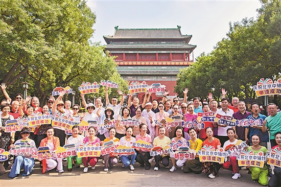 7月27日下午,眾多市民來到北京中軸線上的鐘鼓樓廣場參加北京中軸線申遺成功快閃慶?;顒?。本報記者 王偉偉 攝