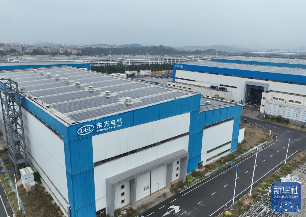 ↑福建三峽海上風(fēng)電國際產(chǎn)業(yè)園內(nèi)東方電氣風(fēng)電(福建)有限公司生產(chǎn)基地一角(2023年11月10日攝,無人機(jī)照片)。