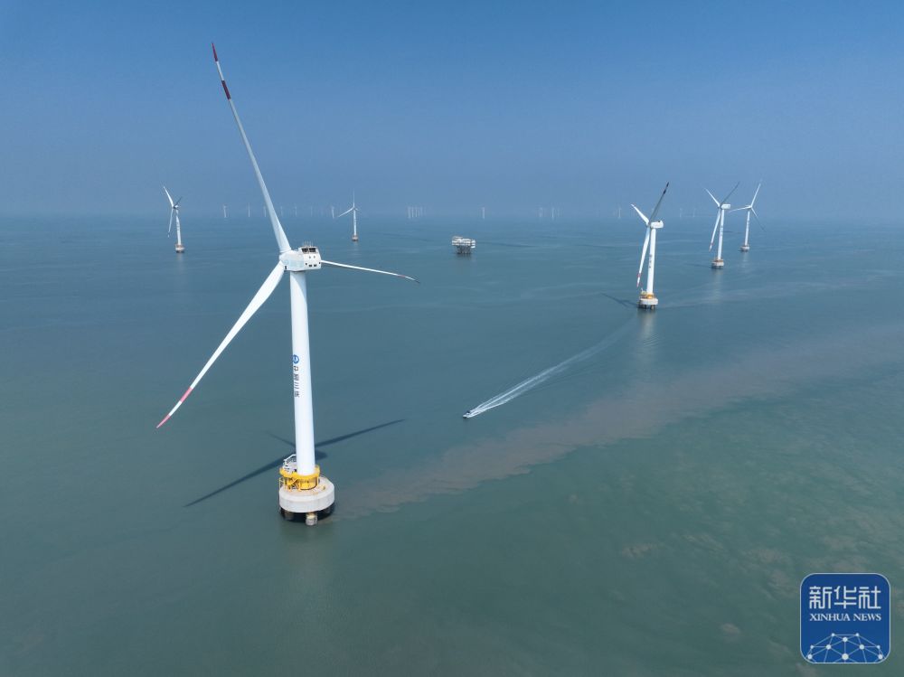 ↑這是8月8日拍攝的三峽福清興化灣海上風(fēng)電場(無人機(jī)照片)。福建三峽海上風(fēng)電國際產(chǎn)業(yè)園自主生產(chǎn)的部分海上風(fēng)電機(jī)組在這里裝機(jī)投產(chǎn)。