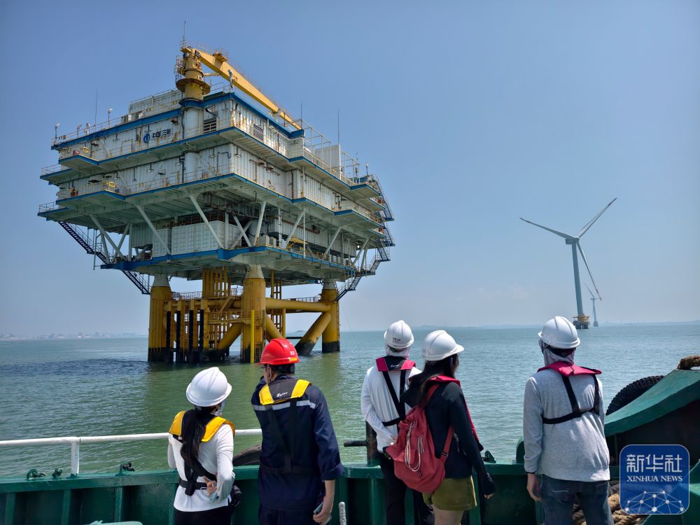 ↑這是8月8日拍攝的三峽福清興化灣海上風(fēng)電場海上升壓站。福建三峽海上風(fēng)電國際產(chǎn)業(yè)園自主生產(chǎn)的部分海上風(fēng)電機(jī)組在這個(gè)風(fēng)電場裝機(jī)投產(chǎn)。