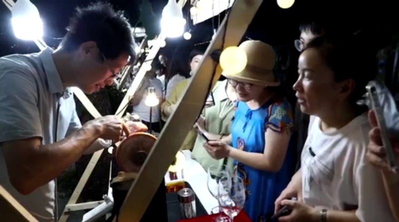 臺(tái)州玻雕非遺傳承人孫亮介紹:“像我們龍鳳杯,那一龍一鳳,他們平常的百姓結(jié)婚,作為一個(gè)紀(jì)念品,可以把他們的名字刻上去。” 讓“大而精”的玻雕工藝品轉(zhuǎn)變?yōu)椤靶《馈钡陌槭侄Y,再次“飛入尋常百姓家”,是吳子熊玻璃藝術(shù)館適應(yīng)新時(shí)代的一次嘗試。