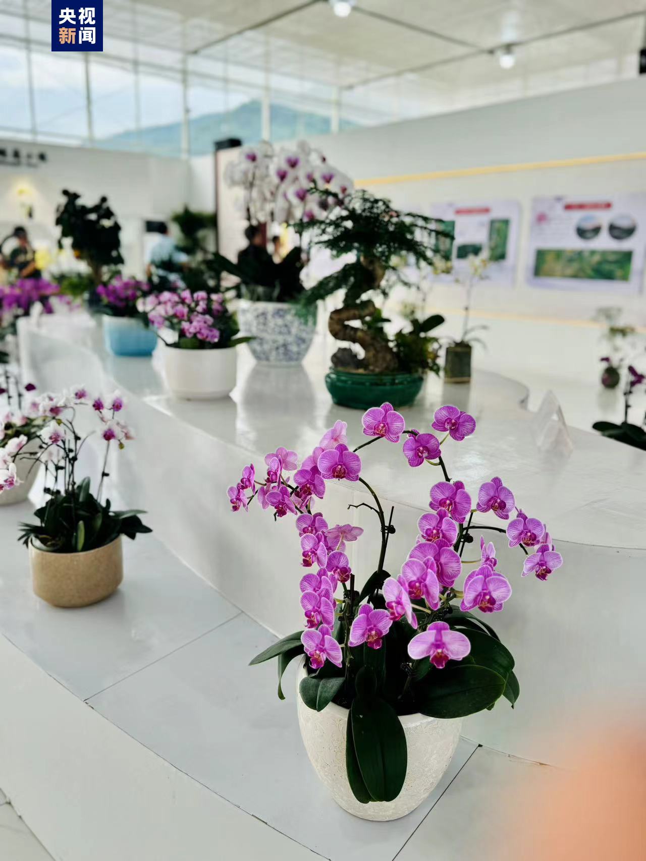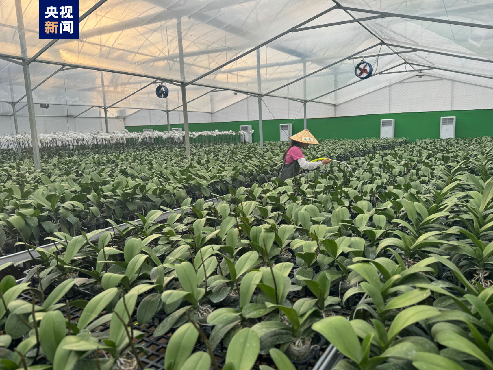 △大棚里工作的花農(nóng) 記者了解到,當(dāng)?shù)夭簧倌贻p人正通過網(wǎng)絡(luò)直播等,向外推介蝴蝶蘭花產(chǎn)品和本地特產(chǎn)等。花卉基地周圍山坡上,還種植了根系發(fā)達、修復(fù)能力強的菌草,以及百余畝櫻花、百香果、樹葡萄等兼具環(huán)保功能和經(jīng)濟效益的農(nóng)作物。