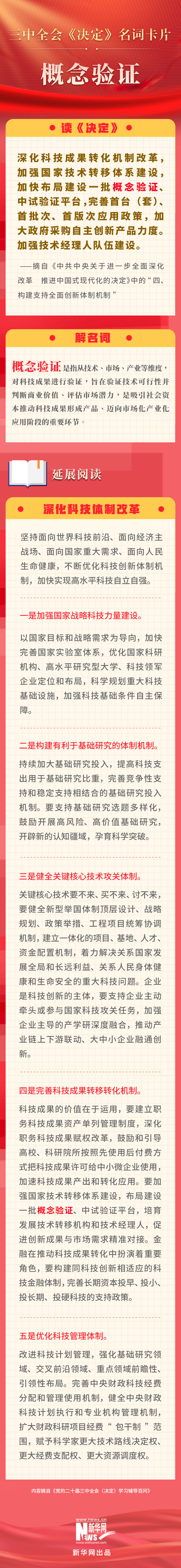 黨的二十屆三中全會(huì)審議通過了《中共中央關(guān)于進(jìn)一步全面深化改革、推進(jìn)中國式現(xiàn)代化的決定》。新華網(wǎng)依據(jù)《黨的二十屆三中全會(huì)〈決定〉學(xué)習(xí)輔導(dǎo)百問》,制作三中全會(huì)《決定》系列名詞卡片,和大家一起來深入學(xué)習(xí)領(lǐng)會(huì)二十屆三中全會(huì)精神。本期名詞是“概念驗(yàn)證”。