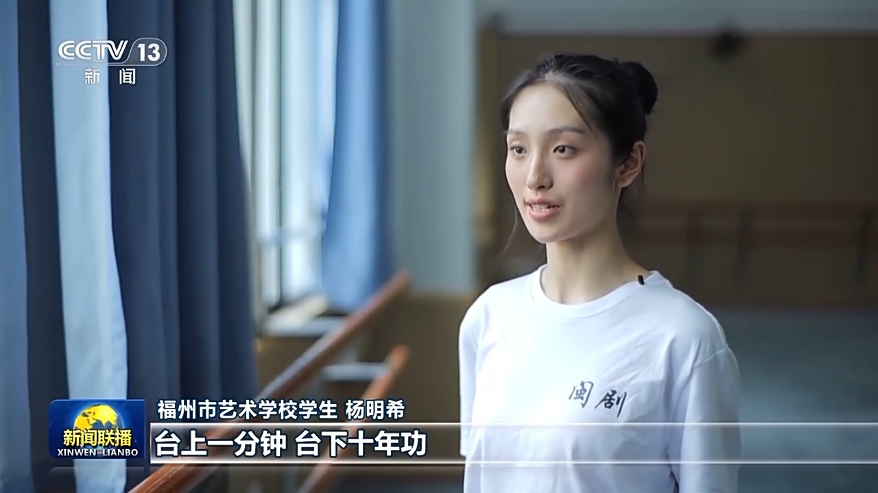 福州市藝術(shù)學(xué)校學(xué)生 楊明希:勤學(xué)苦練,振興閩劇,這八個(gè)字時(shí)刻提醒我們臺(tái)上一分鐘,臺(tái)下十年功。我們要學(xué)好文化,又要學(xué)好專業(yè),學(xué)閩劇一定要吃苦才能把基本功打?qū)崱?/p>