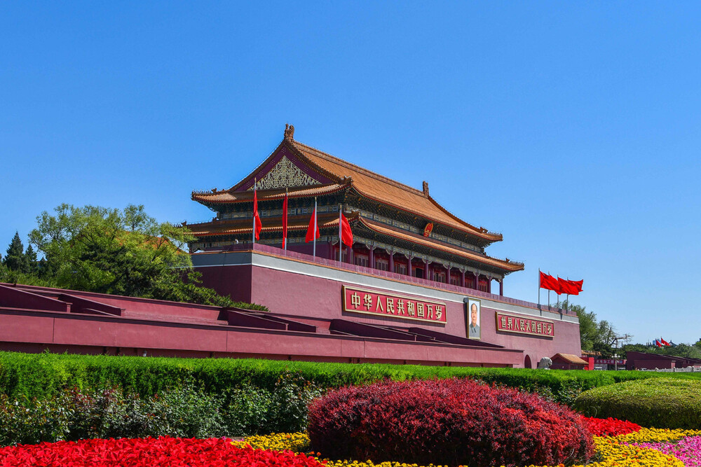 今天,如果你來到天安門廣場,會(huì)看到人民的中軸線上、人民的廣場上,有最美的花、有最甜的果。