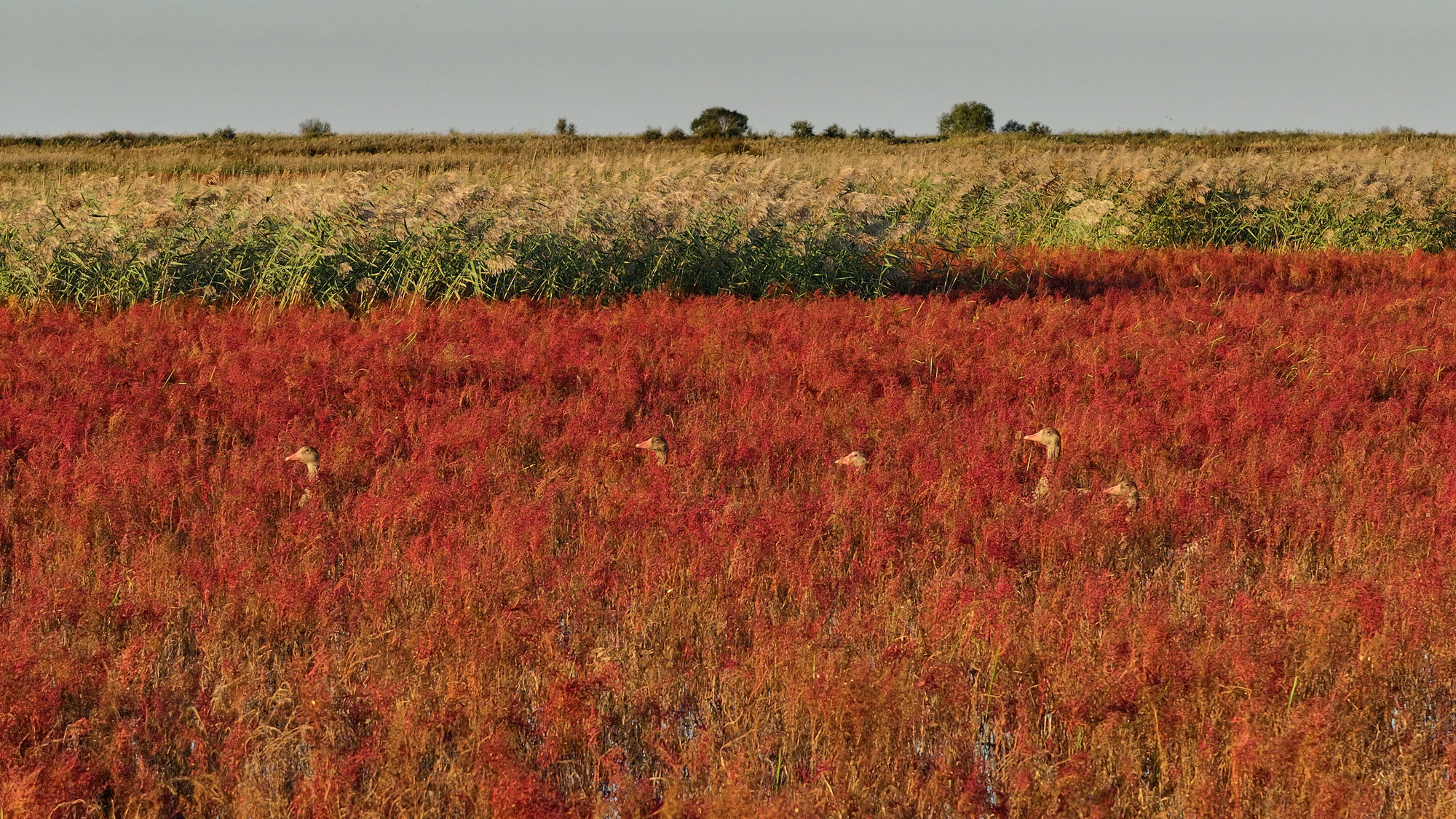 山東黃河三角洲自然保護(hù)區(qū) 黃河三角洲能有多少鳥?聊起這個(gè)問題,保護(hù)區(qū)管委會(huì)負(fù)責(zé)監(jiān)測(cè)鳥類的工程師張希濤,能來(lái)一段相聲“貫口”。 張希濤:首先來(lái)的一般是鶴類和雁鴨類。丹頂鶴、蓑羽鶴、白頭鶴、白枕鶴、沙丘鶴等這一系列鶴都要來(lái)。再一個(gè)雁鴨類的,像野鴨在我們這里就接近30種:斑嘴鴨、綠頭鴨、秋沙鴨、白頭鴨、赤麻鴨等一系列鴨。鳥浪最厲害的時(shí)候能達(dá)到一兩公里,非常壯觀。