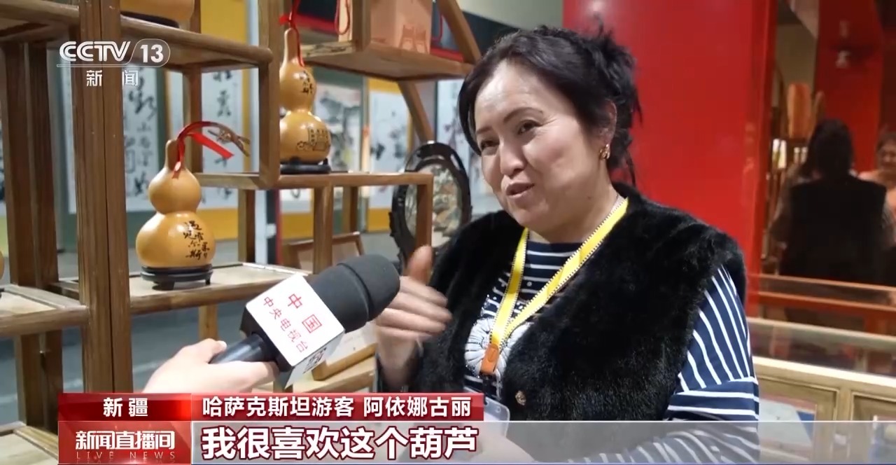 哈薩克斯坦游客 阿依娜古麗:我很喜歡這個(gè)葫蘆,我覺得它展示了中國的傳統(tǒng)文化,中國有5000年的文化,我非常喜歡。這是我第一次來到中國,我會把在這里的所見所聞講給我的家人,以后我還會再來的。