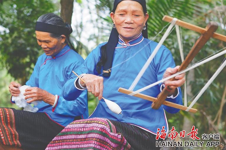 海南黎族婦女紡線。海南日報(bào)全媒體記者 張杰 攝