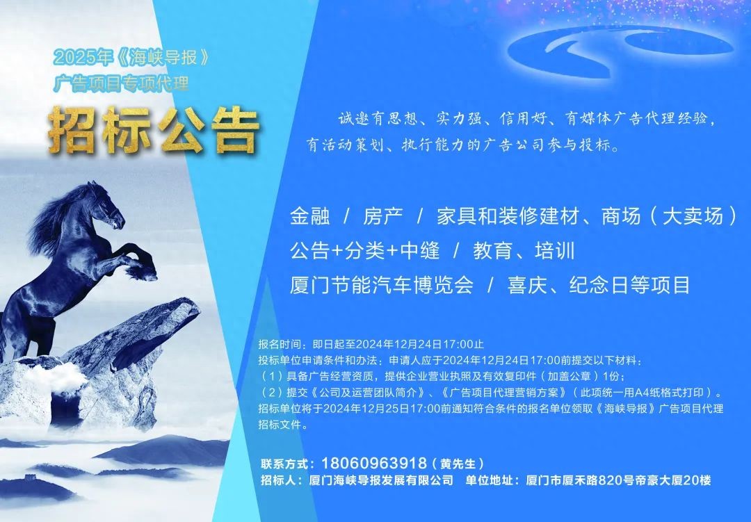 2025年《海峽導(dǎo)報(bào)》廣告項(xiàng)目專項(xiàng)代理招標(biāo)公告
