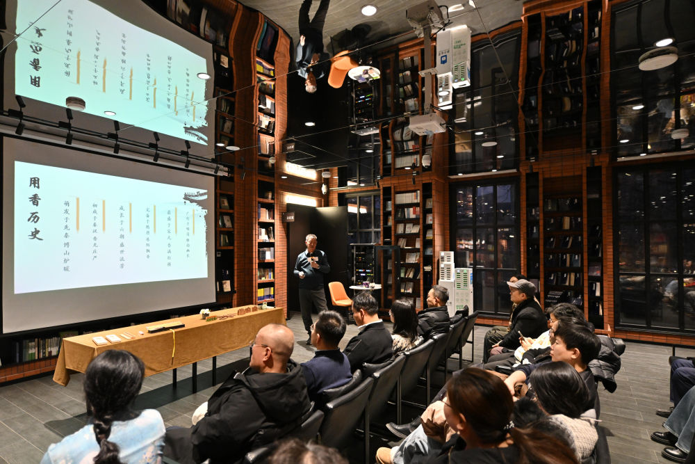 ↑在天津意式風(fēng)情區(qū)鐘書閣書店,讀者參加一場傳統(tǒng)文化夜讀體驗活動(12月19日攝)。