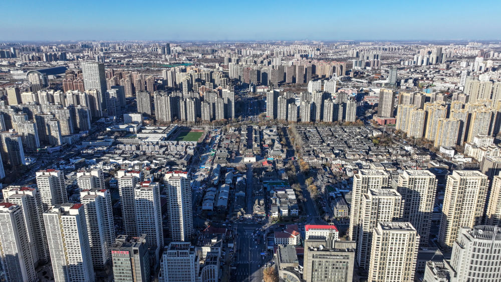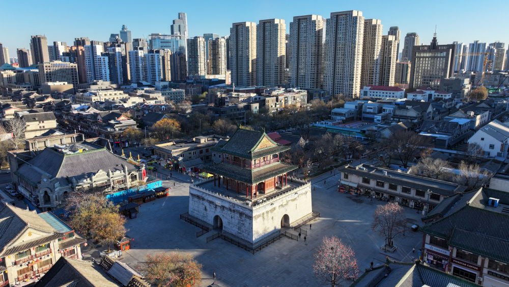 ↑這是12月17日拍攝的天津鼓樓及老城廂地區(qū)(無人機(jī)照片)。