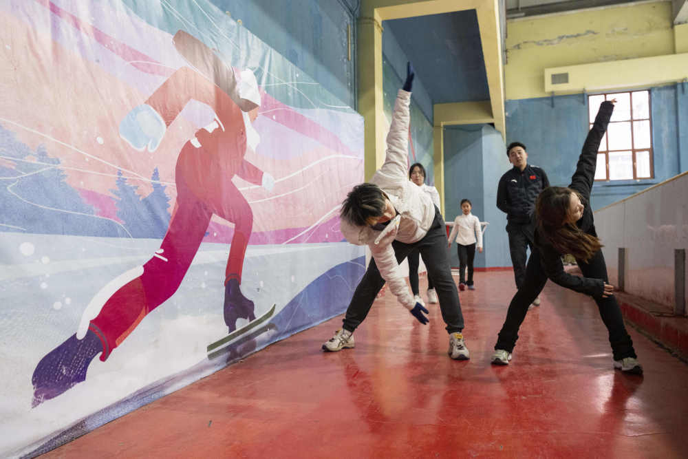 2023年3月14日,一名中學(xué)體育老師在河北張家口冰之夢滑冰場指導(dǎo)學(xué)生。在張家口這座“冬奧之城”,市民百姓參加冰雪運(yùn)動(dòng)已經(jīng)蔚然成風(fēng),“全季全體育”理念發(fā)展成為城市新名片。