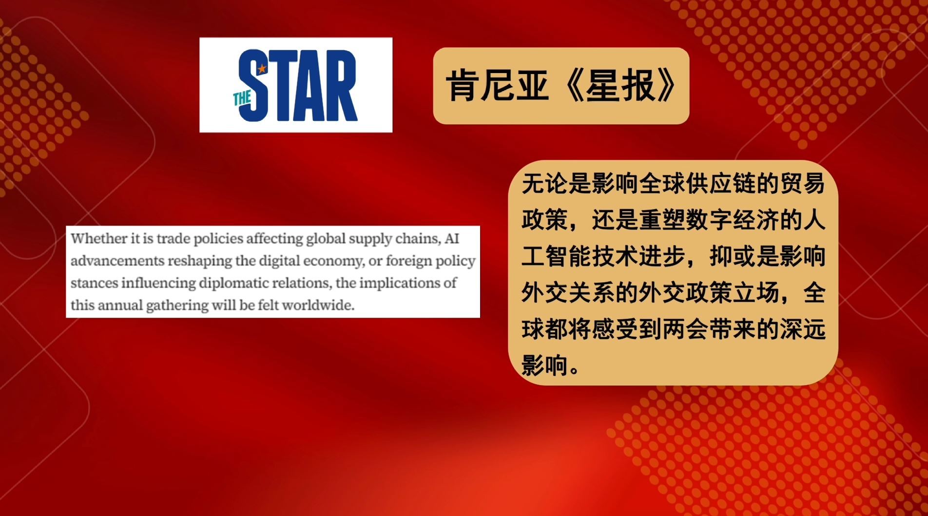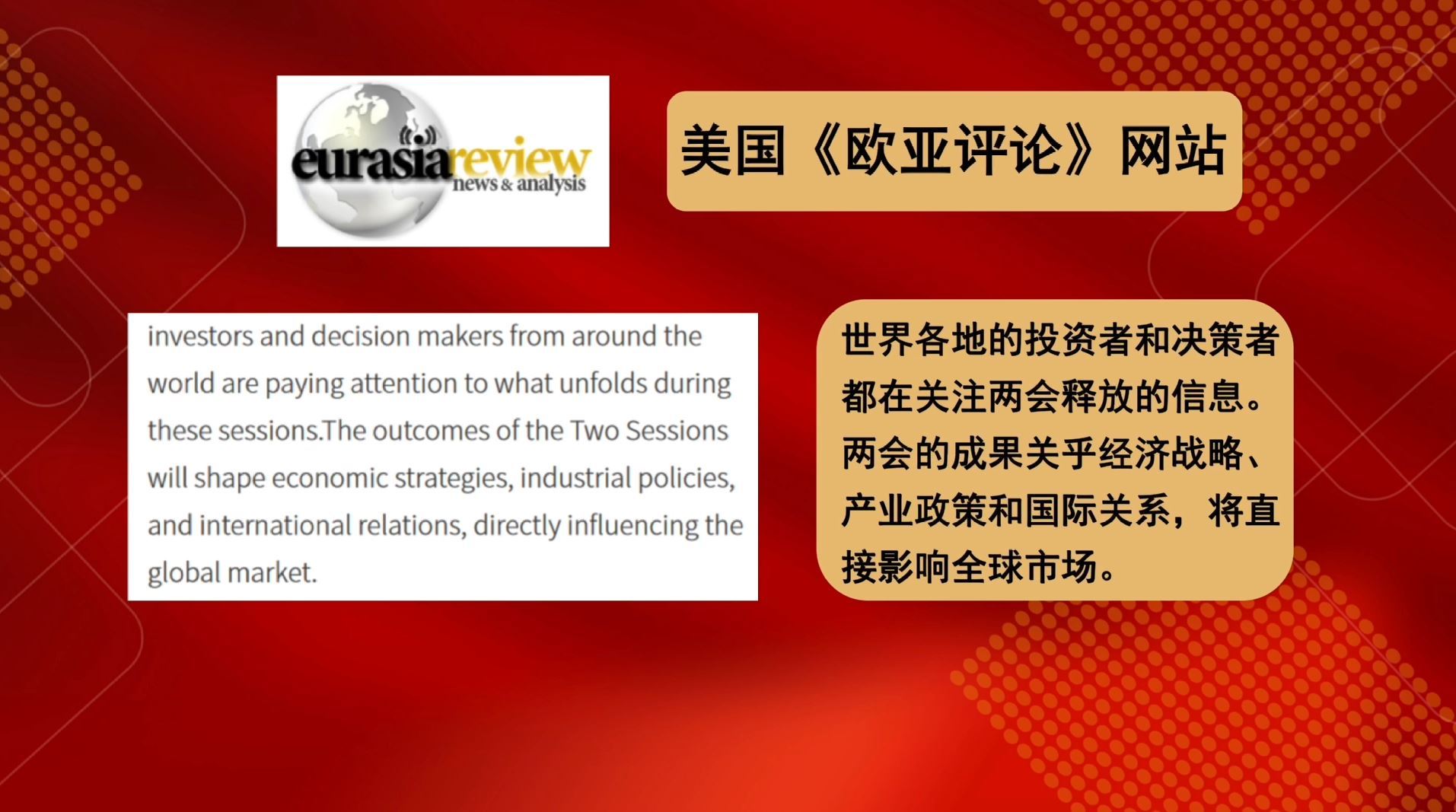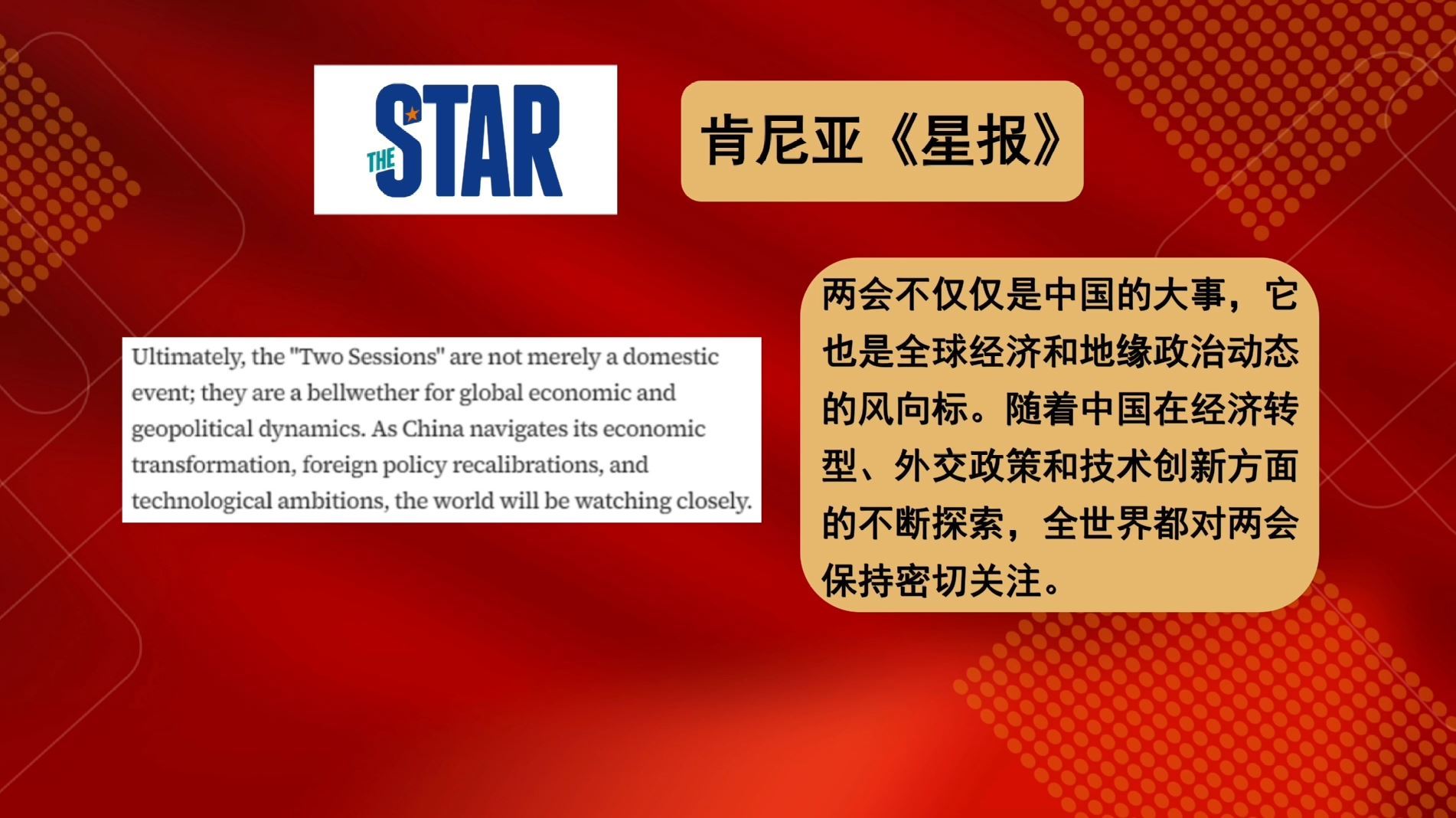 多家外國媒體紛紛用“全球性的重要意義”“直接影響全球市場”“全球的風(fēng)向標”“全球感受到兩會的深遠影響”這些描述,對中國兩會對世界的重要性給予高度肯定。