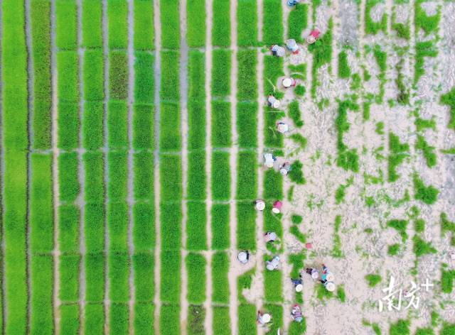 陽江市農(nóng)科所在白沙試驗場進行省水稻區(qū)域試驗早造插秧工作。南方+拍客 關(guān)巧明 攝