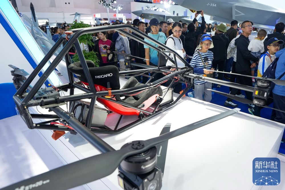 ↑ 9月20日,參觀者在現(xiàn)場參觀載人多旋翼飛行器。