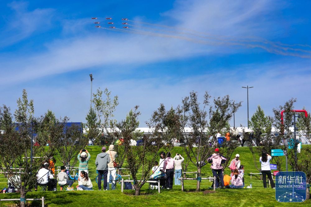 ↑ 9月20日,參觀者在長春市藍天公園觀賞飛行表演。