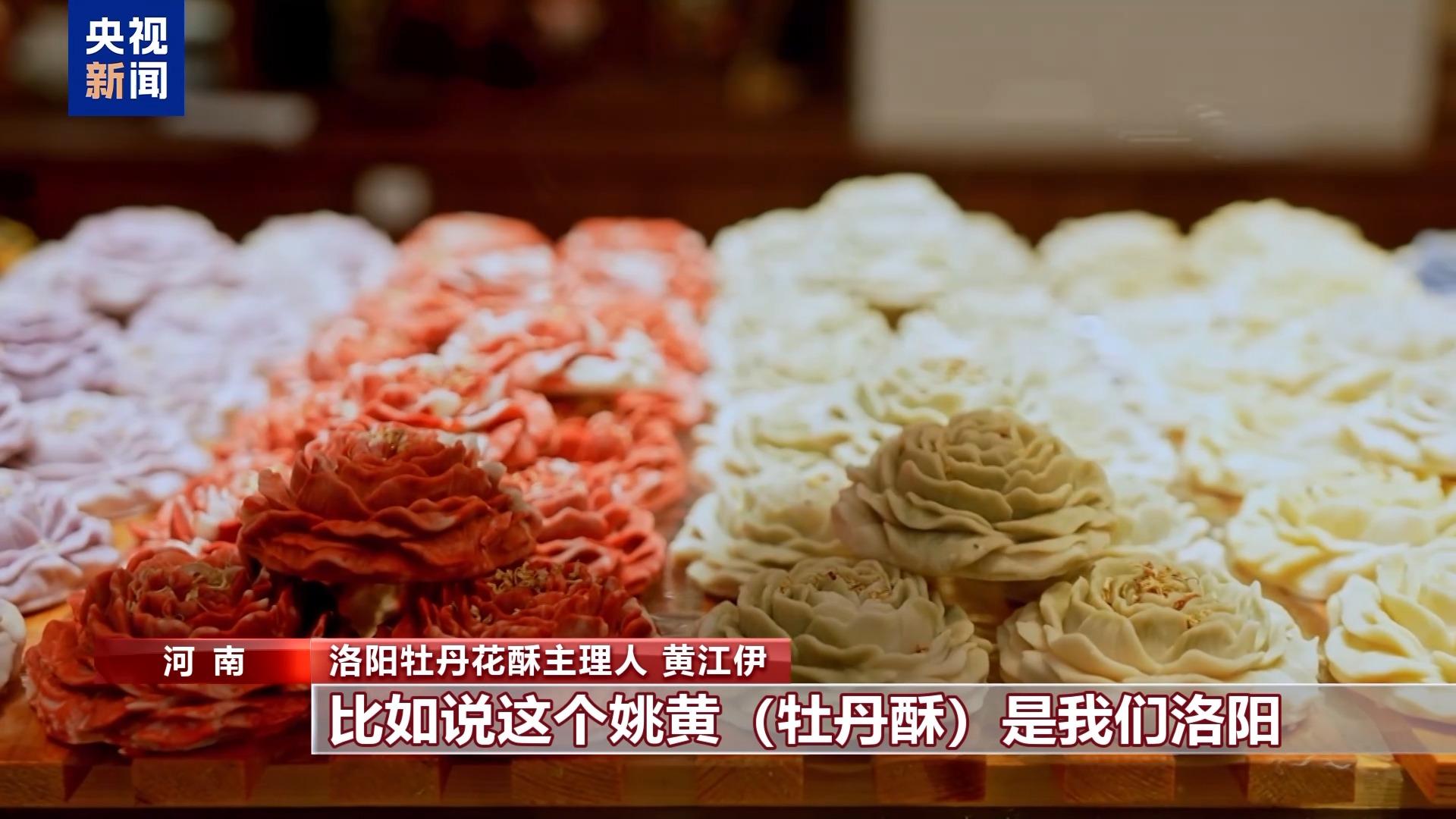 河南洛陽牡丹花酥主理人 黃江伊:我們用了洛陽牡丹花現(xiàn)有的顏色,比如說這個姚黃(牡丹酥)是洛陽特有的姚黃牡丹,我們就對應(yīng)它的牡丹進(jìn)行了配色,想讓它好看又好吃,又健康。 不斷“綻放”的牡丹酥和牡丹花茶等伴手禮一起,在洛陽托舉出一個“味蕾經(jīng)濟(jì)”,形成牡丹的“全株利用”的新業(yè)態(tài)。