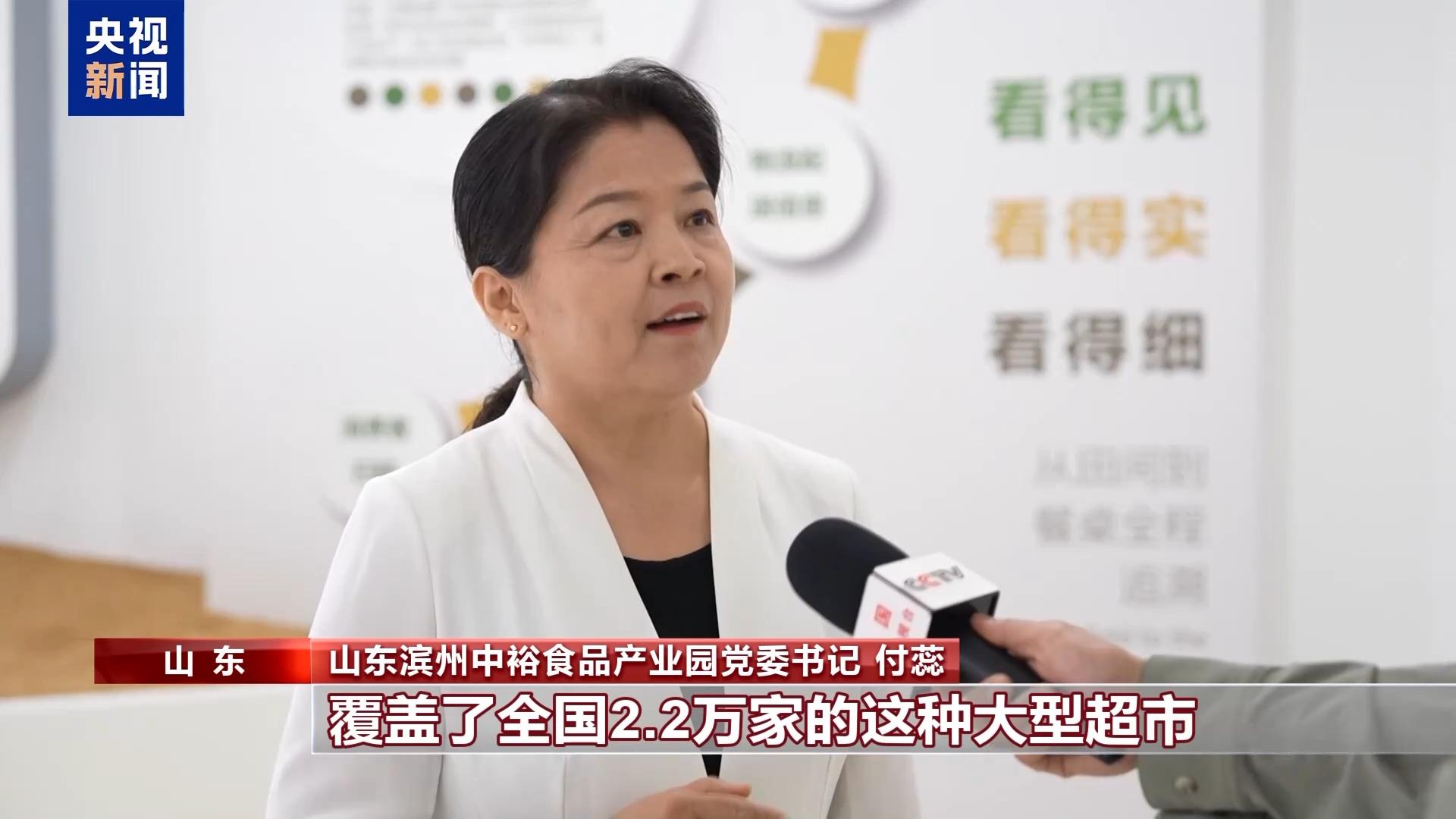 山東濱州中裕食品產(chǎn)業(yè)園黨委書記 付蕊:覆蓋了全國2.2萬家的這種大型超市和30萬家中小型超市,能夠滿足整個節(jié)假日的供應(yīng)。