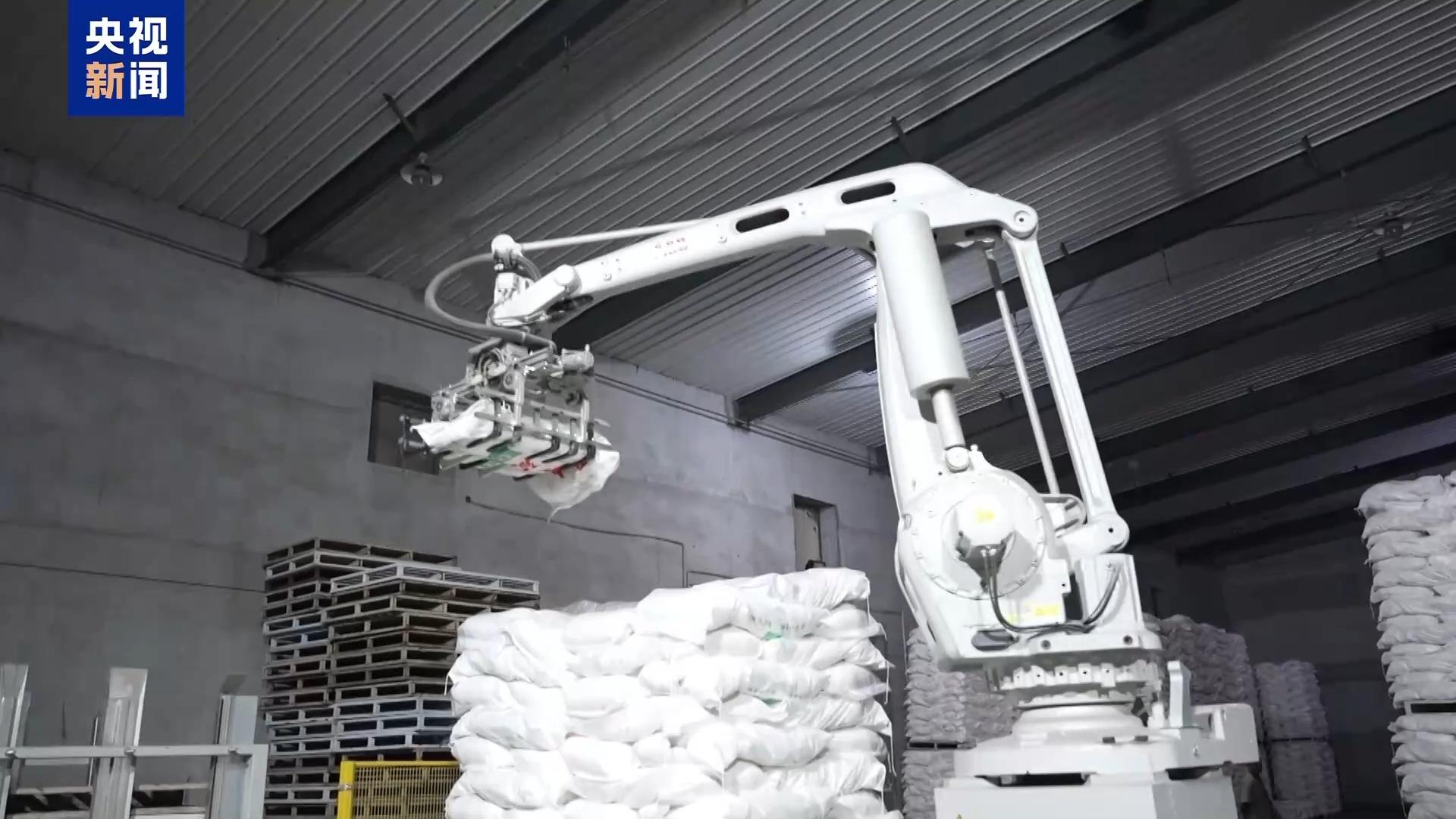 在這個生產(chǎn)線上,工人有了數(shù)字“工友”。面粉的分揀靠的是自動碼垛機(jī),也就是一個超級機(jī)械手來完成。而面粉“坐著”螺旋式的輸送機(jī),進(jìn)入到分揀環(huán)節(jié)。