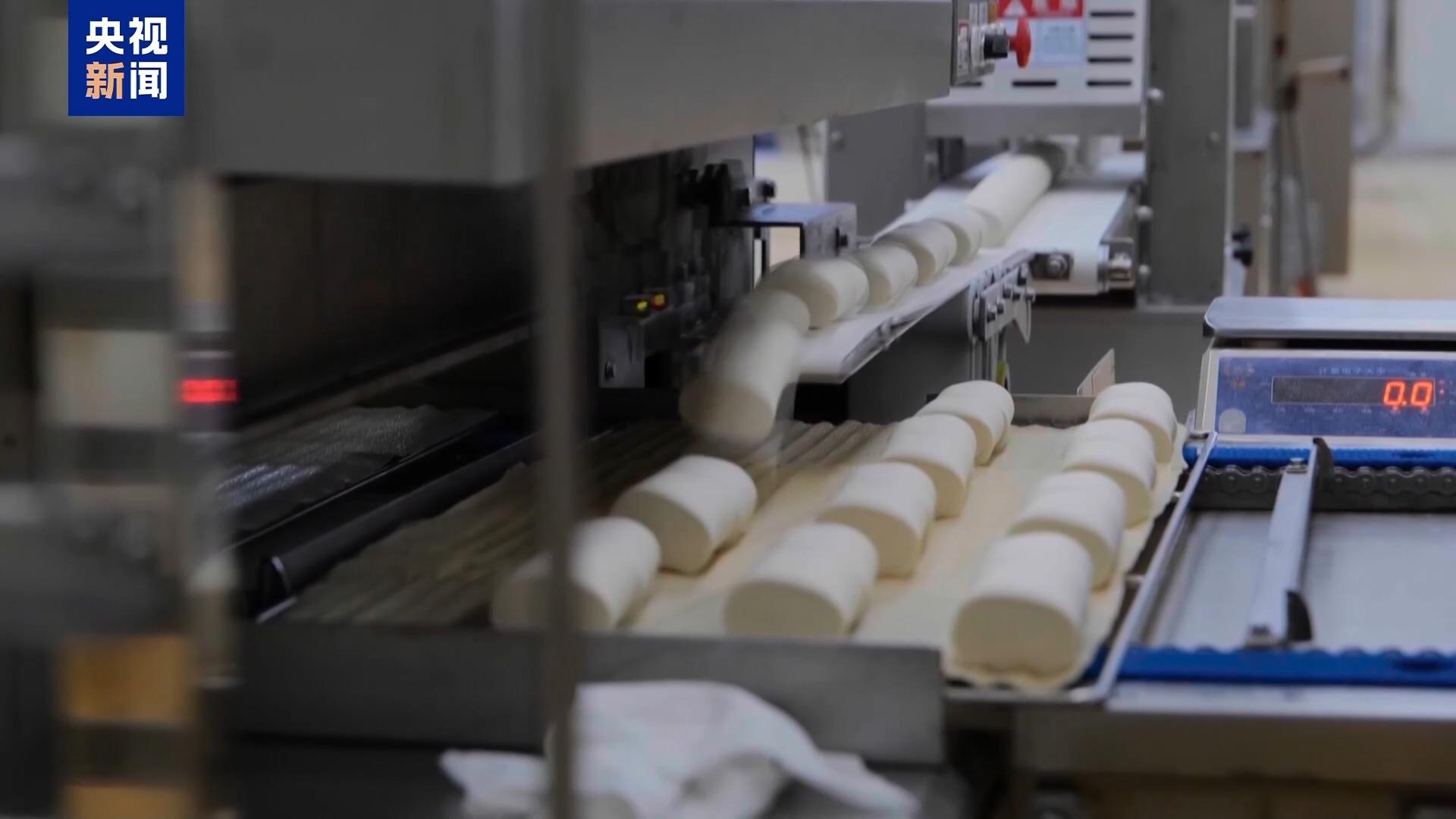 而在山東中裕食品產(chǎn)業(yè)園的產(chǎn)業(yè)鏈條上,小麥加工后,能轉(zhuǎn)化為600種不同的深加工產(chǎn)品。烘焙廚房里,牛乳面包、大列巴以及適合家庭聚餐的“大月餅”,正在加緊生產(chǎn)。