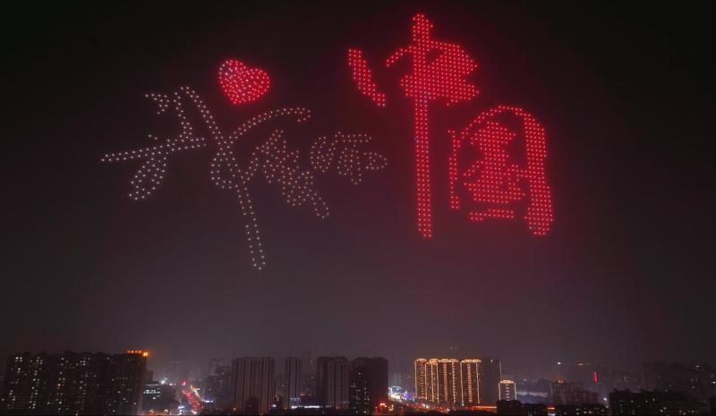 這場(chǎng)無(wú)人機(jī)燈光秀不僅是科技與光影的震撼演繹,更是烏魯木齊高新區(qū)(新市區(qū))加快推動(dòng)“低空經(jīng)濟(jì)+文旅產(chǎn)業(yè)”融合發(fā)展、創(chuàng)新低空經(jīng)濟(jì)應(yīng)用場(chǎng)景的生動(dòng)實(shí)踐。活動(dòng)緊扣鑄牢中華民族共同體意識(shí)主線,精心設(shè)計(jì)12組主題圖案,通過(guò)前沿的無(wú)人機(jī)編隊(duì)技術(shù)與燈光藝術(shù),將烏魯木齊日新月異的城市發(fā)展變化、各民族團(tuán)結(jié)和睦的生動(dòng)場(chǎng)景、源遠(yuǎn)流長(zhǎng)的文化底蘊(yùn),以及烏魯木齊高新區(qū)(新市區(qū))蓬勃迸發(fā)的科技創(chuàng)新活力一一呈現(xiàn)。 當(dāng)晚9點(diǎn),“我愛(ài)你中國(guó)”的巨型造型率先劃破夜空,絢爛色彩如星河奔涌般鋪展,一枚立體愛(ài)心從文字間躍動(dòng)而出,將對(duì)祖國(guó)的赤誠(chéng)告白凝于天際,也拉開(kāi)了這場(chǎng)科技文旅盛宴的序幕。緊接著,無(wú)人機(jī)群快速聯(lián)動(dòng)變換,“1955—2025,慶祝新疆維吾爾自治區(qū)成立70周年”的立體字樣凌空而立,散落的光點(diǎn)巧妙融入“70”的輪廓里,明暗交替仿佛時(shí)光跳動(dòng)的脈搏。