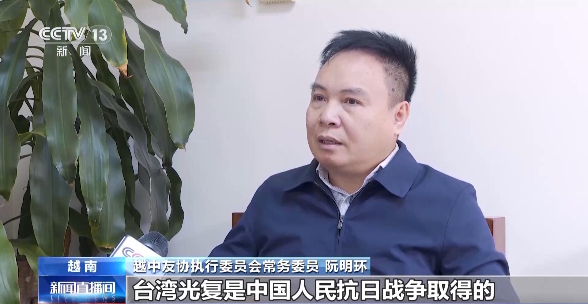 越中友協執(zhí)行委員會常務委員 阮明環(huán):臺灣光復是中國人民抗日戰(zhàn)爭取得的一項十分重要的成就,也是世界反法西斯戰(zhàn)爭勝利的重大成果。1971年聯合國大會第2758號決議,鄭重確認了一個中國原則,這具有廣泛而權威的法律效力。
