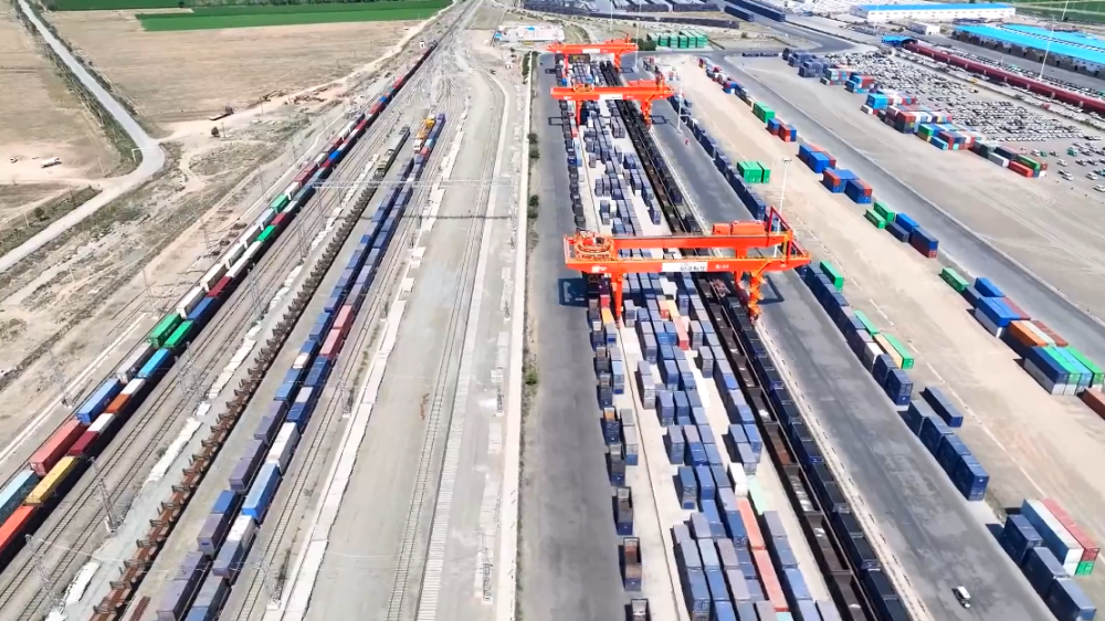 鳥瞰烏魯木齊國際陸港區(qū)中歐班列集結(jié)中心。(無人機(jī)航拍)(受訪者供圖)