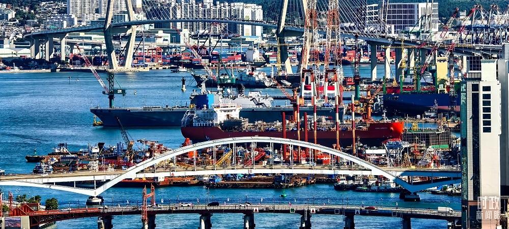 △韓國(guó)釜山繁忙的港口。(總臺(tái)央視記者陳漢章拍攝)
