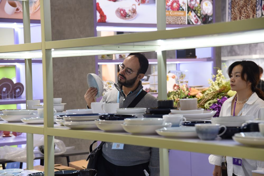 10月27日,采購商在第138屆廣交會第二期展會上查看瓷器餐具產(chǎn)品。新華社記者 洪澤華 攝