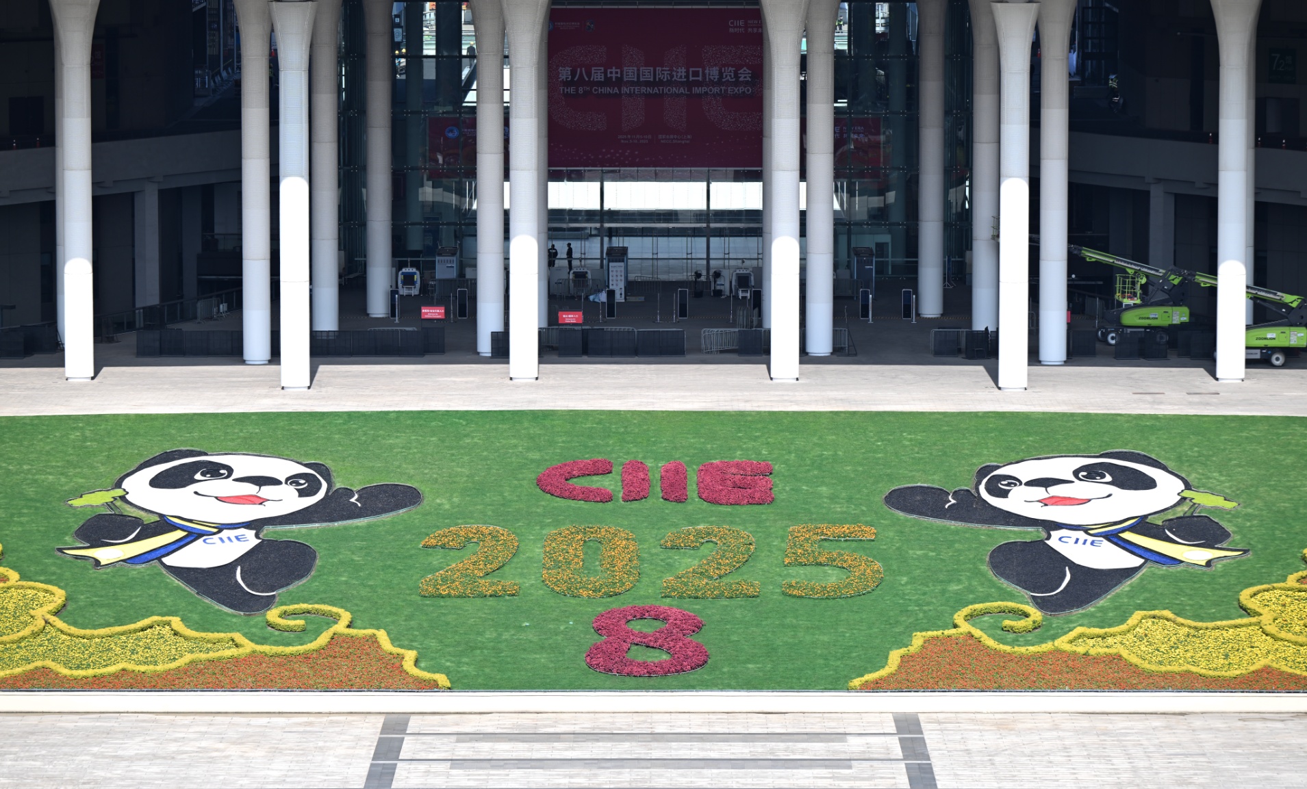目前上海進(jìn)博氛圍濃情綻放。以“海納百川,共享未來”為主題,國家會展中心(上海)南廣場完成8000多平方米綠化景觀布置,延續(xù)“云山—梯田花?!恿鳌F(xiàn)代城市花園”空間布局,各色花卉勾勒出祥云、漸變云山等紋樣,“CIIE”“2025”字樣與數(shù)字“8”造型醒目亮眼,廣場兩側(cè)彩旗飄揚(yáng),展現(xiàn)上海正以開放的胸襟擁抱世界的姿態(tài)。二十四節(jié)氣景觀柱流光溢彩,林帶探照燈、星光燈、水下燈等各類燈具以及裝飾燈帶的組合運(yùn)用,層層疊疊的花卉和景觀結(jié)構(gòu)被一一點(diǎn)亮,全方位、多時(shí)段展示中華大地的錦繡河山與自然之美。